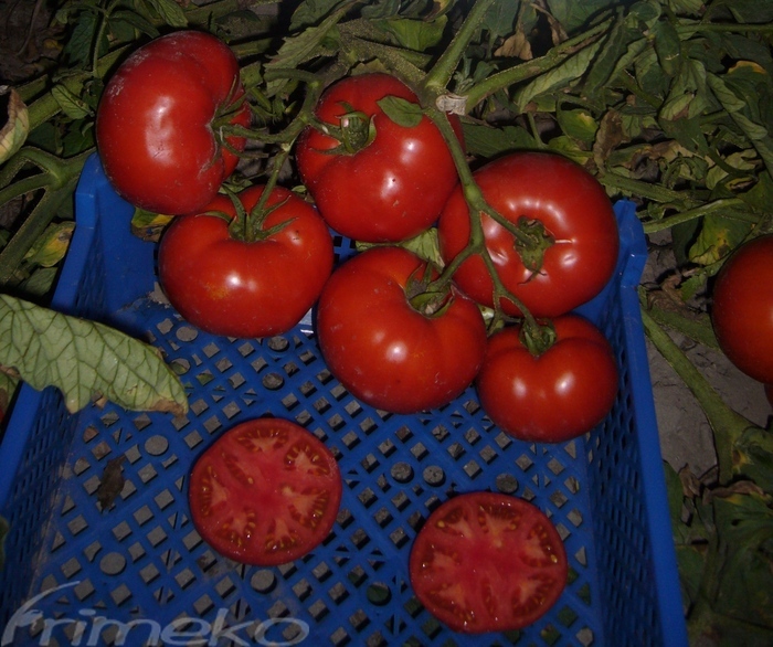 Pomidor gruntowy o wzroście samo kończącym się, kompaktowym pokroju i dużym wigorze oraz żywotności w polu do uprawy z rozsady w zagęszczeniu 20 tys szt/ha. Odmiana średniowczesna, dobrze wiążąca owoce w mniej sprzyjających warunkach od 3-5 szt w gronie, samolikwidując najmniejszy, dzięki czemu owoce są bardzo wyrównane w kształcie i wielkości. Owoc kulisty do lekko spłaszczonego z minimalnie zaznaczoną piętką, barwy krwisto czerwonej i błyszczącą skórką o wspaniałym słodko pikantnym smaku. Masa 180 -250 g. Wielokomorowy o grubym twardym miąższu równomiernie wybarwiającym się i długo nie mięknącym. Pomidor o powiększonej zawartości likopenu i relatywnie wysokim „Brix’ie. Polecany głównie do konsumpcji na świeżo, bo owoce apetycznie sie prezentują (połysk, smak i zapach), ale też chętnie przerabiany przez przemysł na wysokiej jakości przeciery, soki i koncentrat